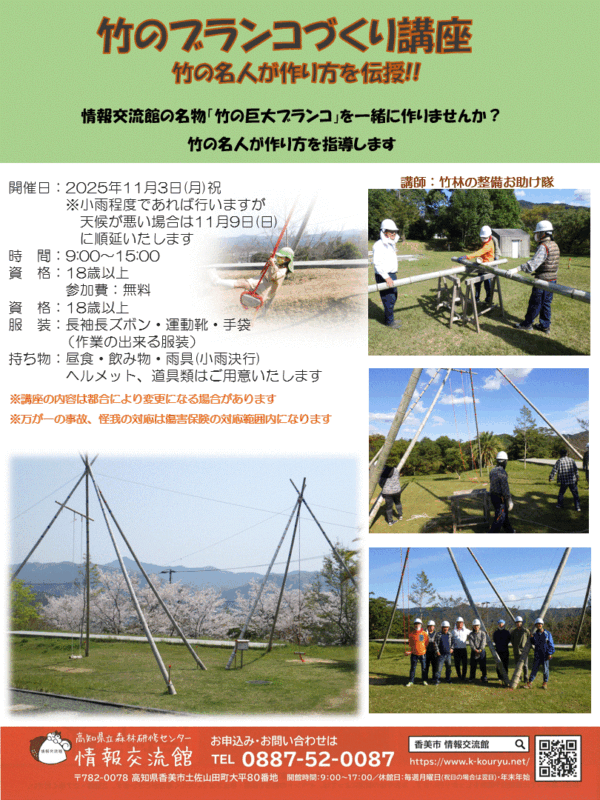 情報交流館名物「竹の巨大ブランコ」を一緒に作りませんか?