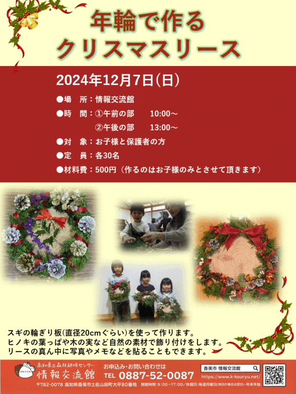 12月7日(日)「年輪で作るクリスマスリース」募集開始です
